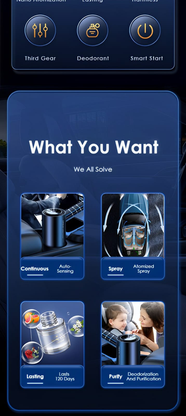 Electronic Air Purifier Auto Aroma Diffuser Deodorization Must-have Car Accsesories Interior Decorations Harmless Discription Aroma Diffuser|Ultrasonic Sensor Chip: Built-in ultrasonic sensor chip ensures automatic perfume atomization and spray upon vibration. Essential Oil Compatibility: Capable of adding pure essential oils for a stronger, refined spray with effective deodorization. Multi-gear Operation: Features three gears for customizable spray intervals, ensuring optimal fragrance diffusion. Long-lasting Battery: Fully charged, the air purifier can operate for up to 2 months, enhancing convenience. Space-saving Design: Compact and lightweight, the air purifier fits easily into car cup holders for on-the-go use.
